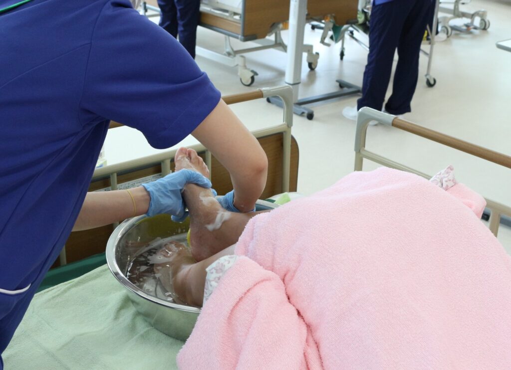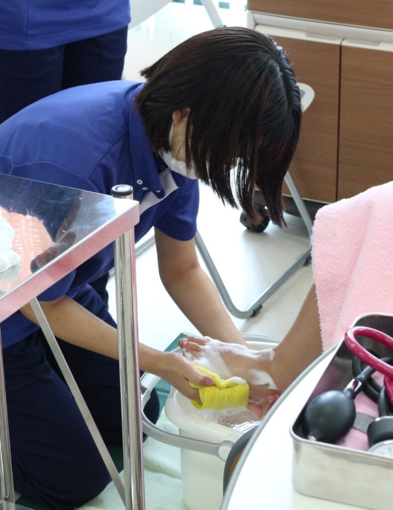 ■1年生基礎看護学 生活基本技術で「足浴」を実施しました。